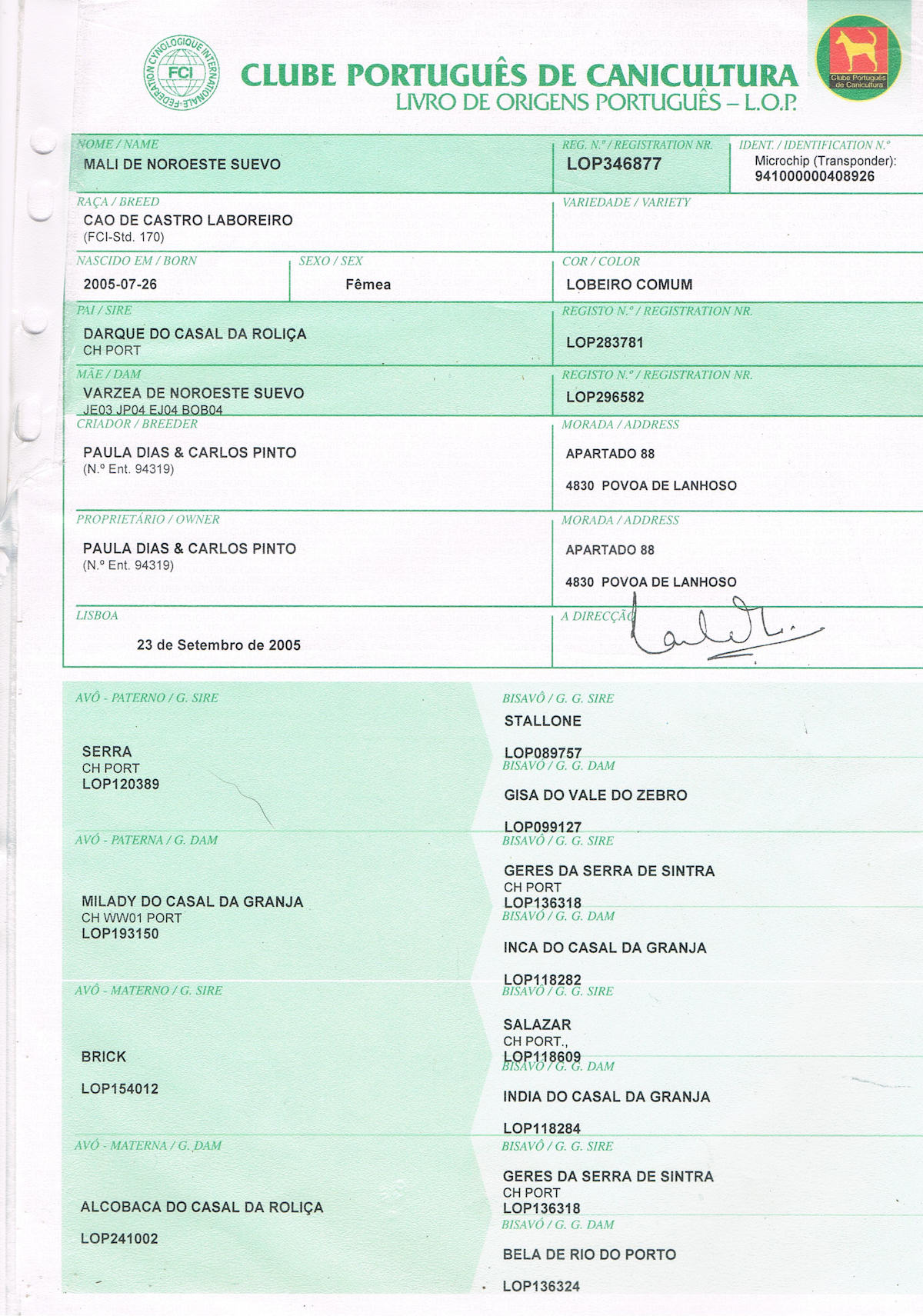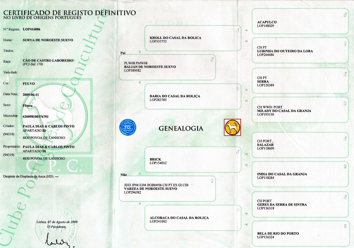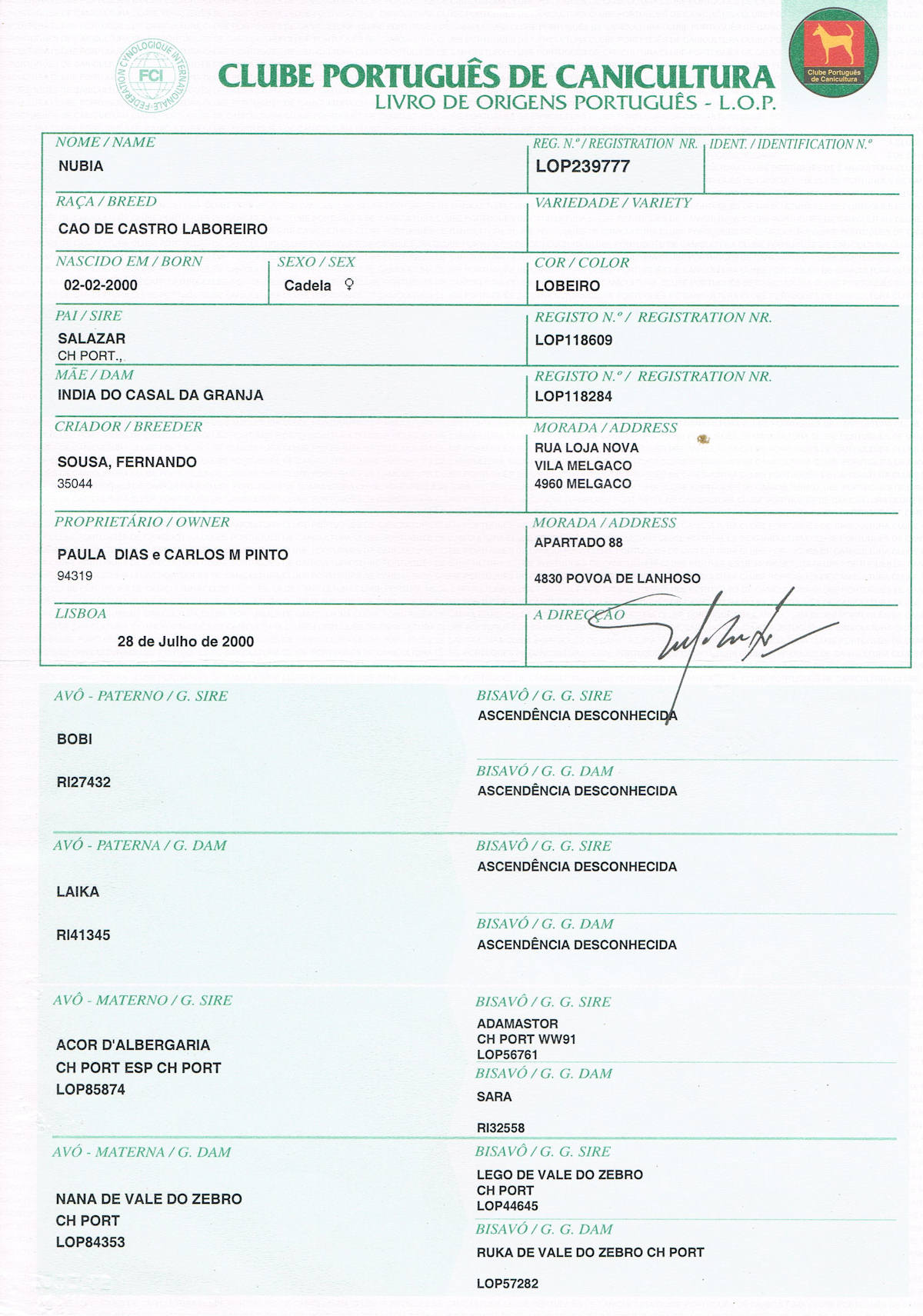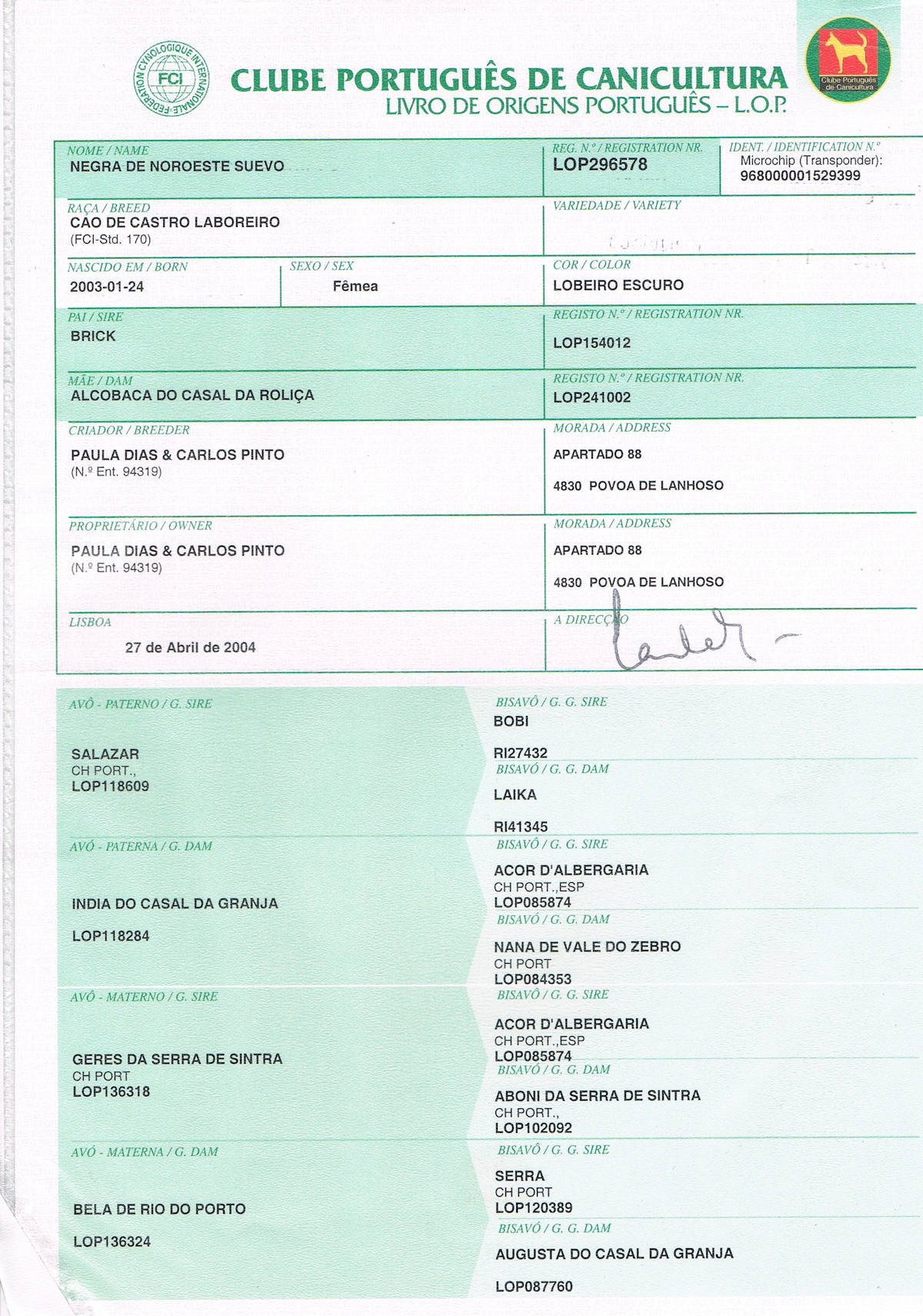 Filha de Salazar (CH PORT) e da India do Casal da Granja