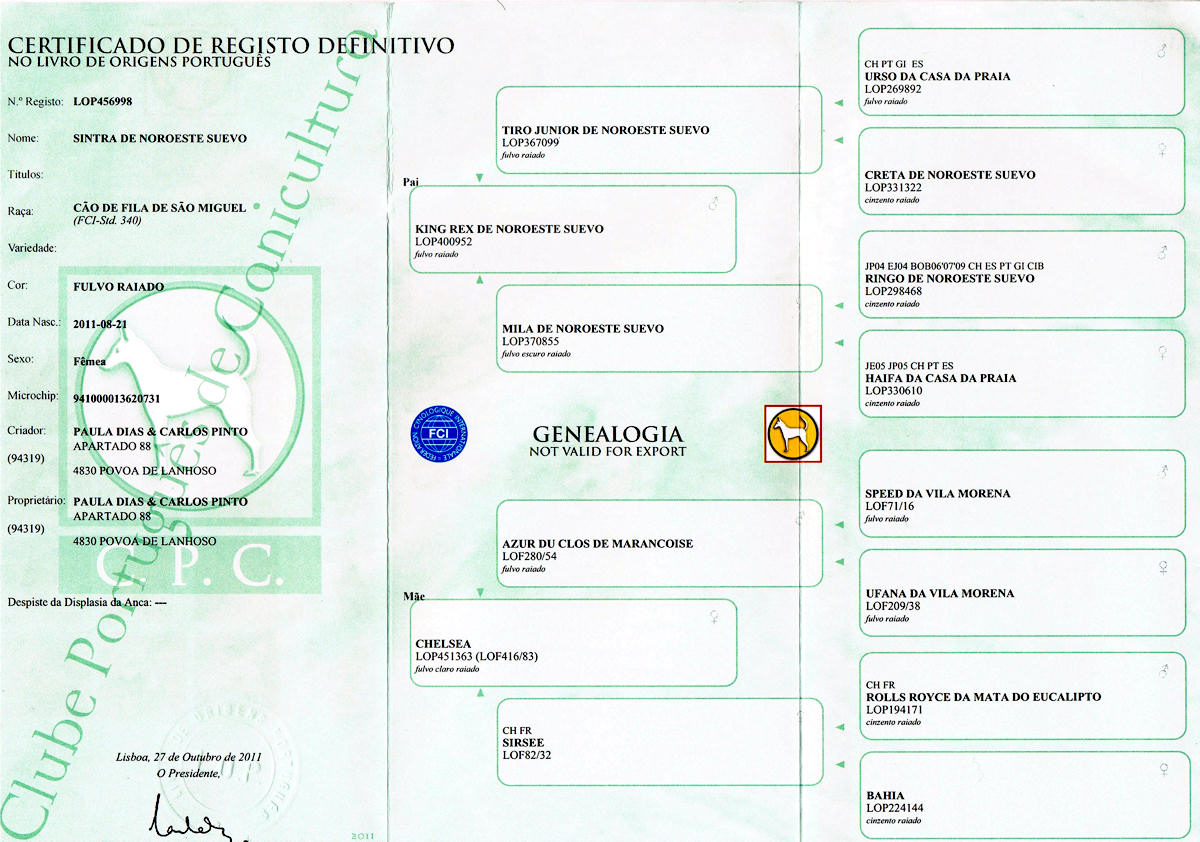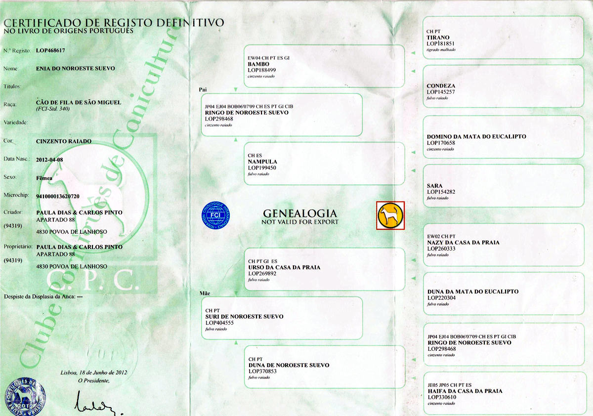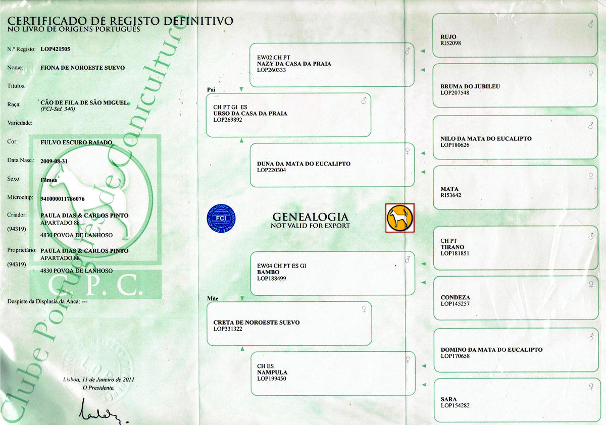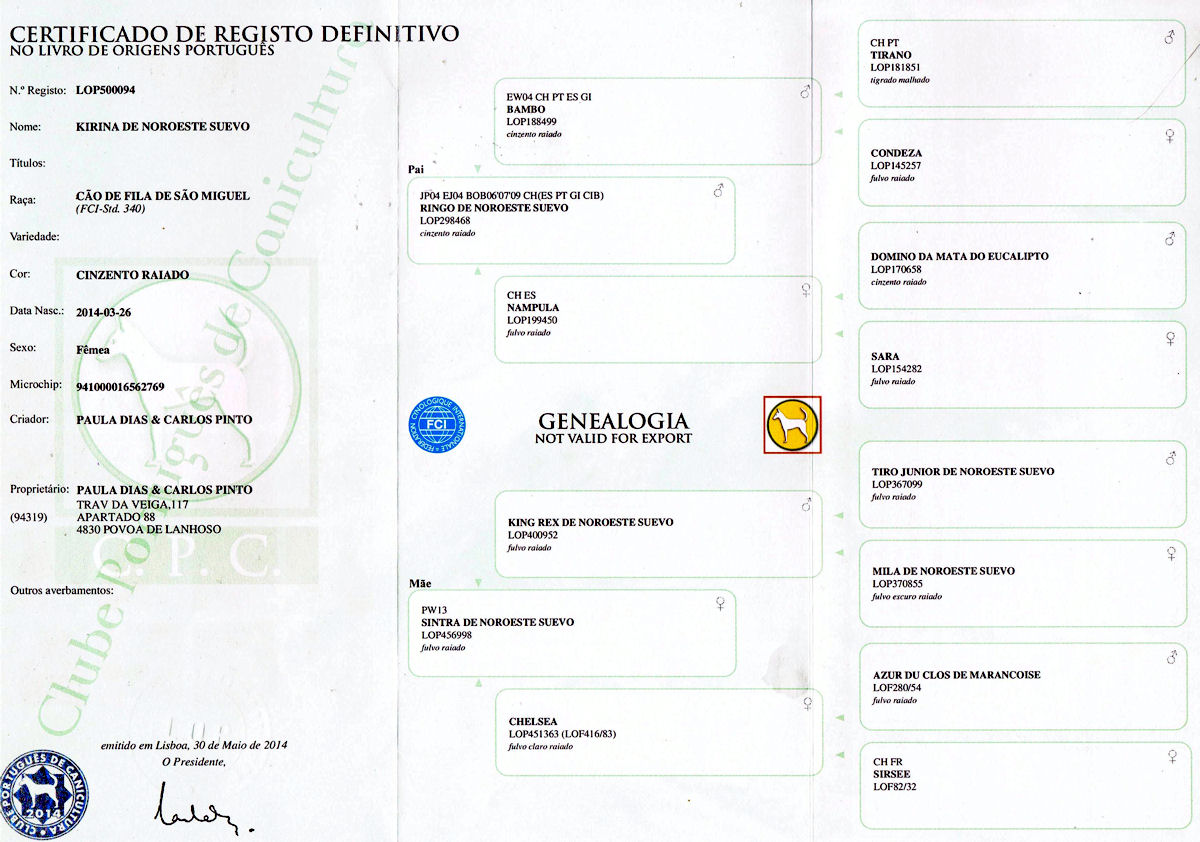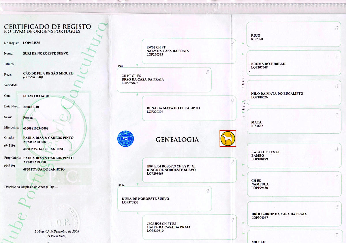 1º Campeão Internacional da raça de Cão de Fila de S. Miguel