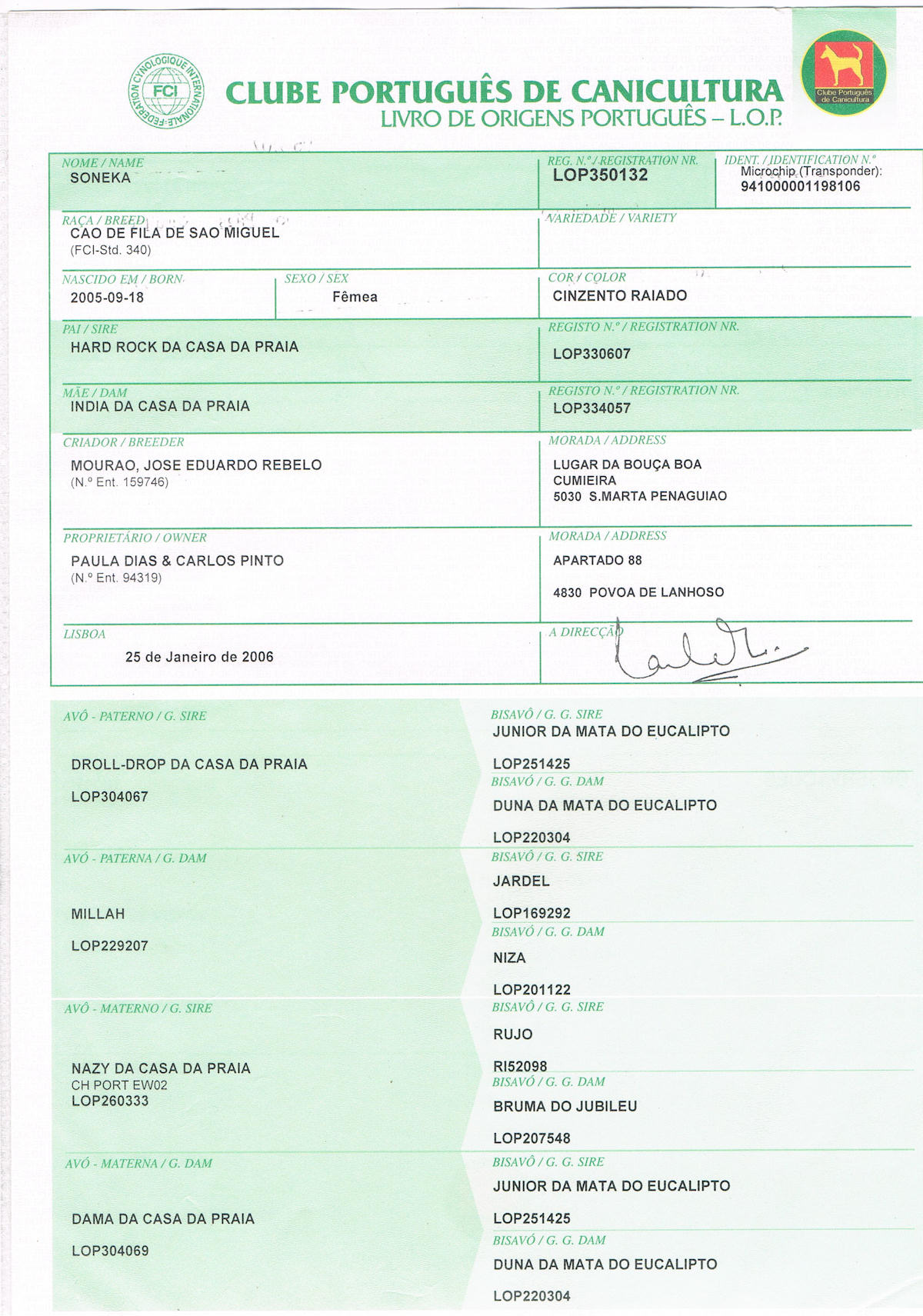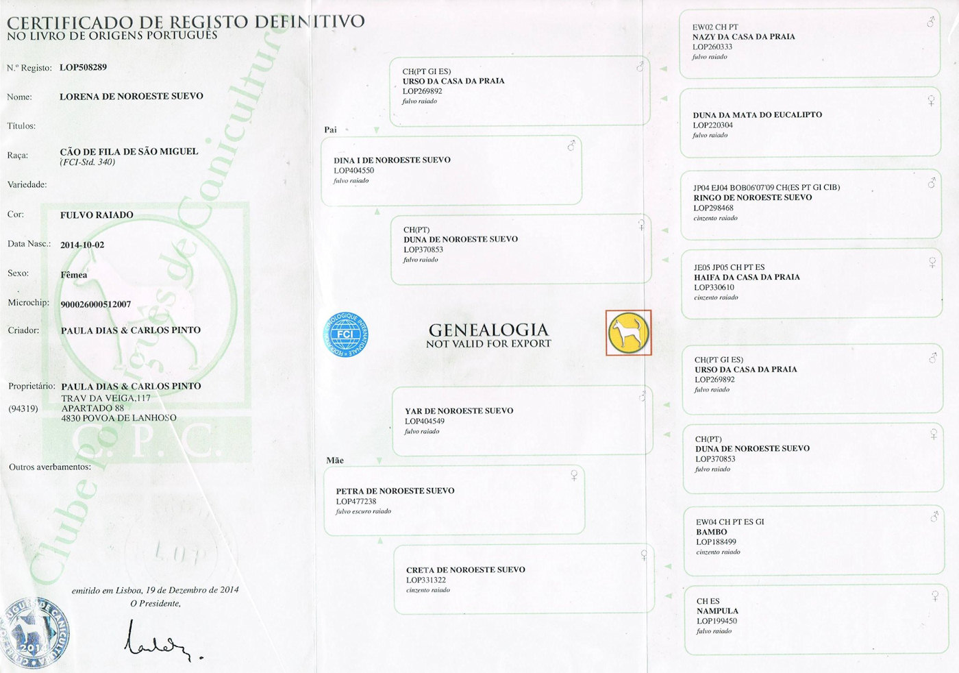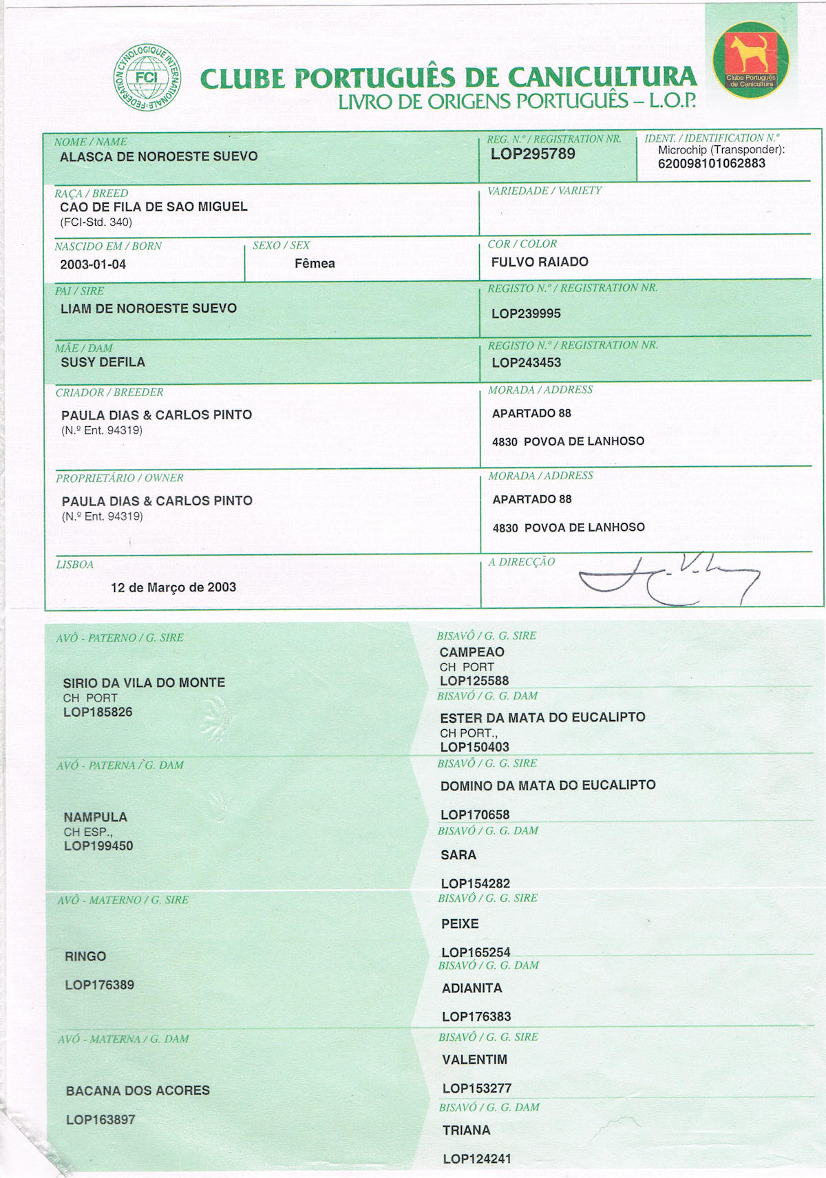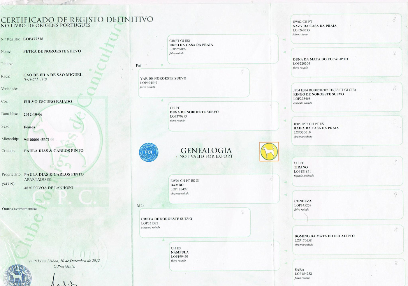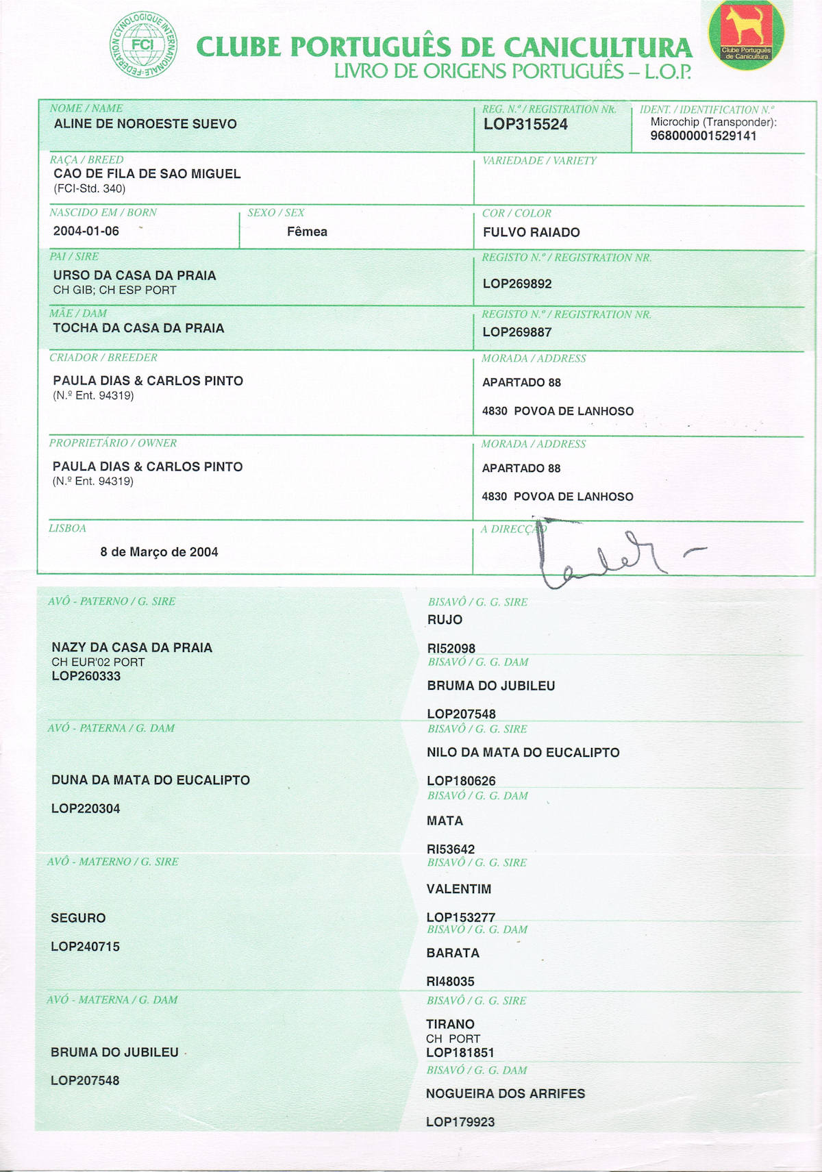 1º Campeão Internacional da raça de Cão de Fila de S. Miguel