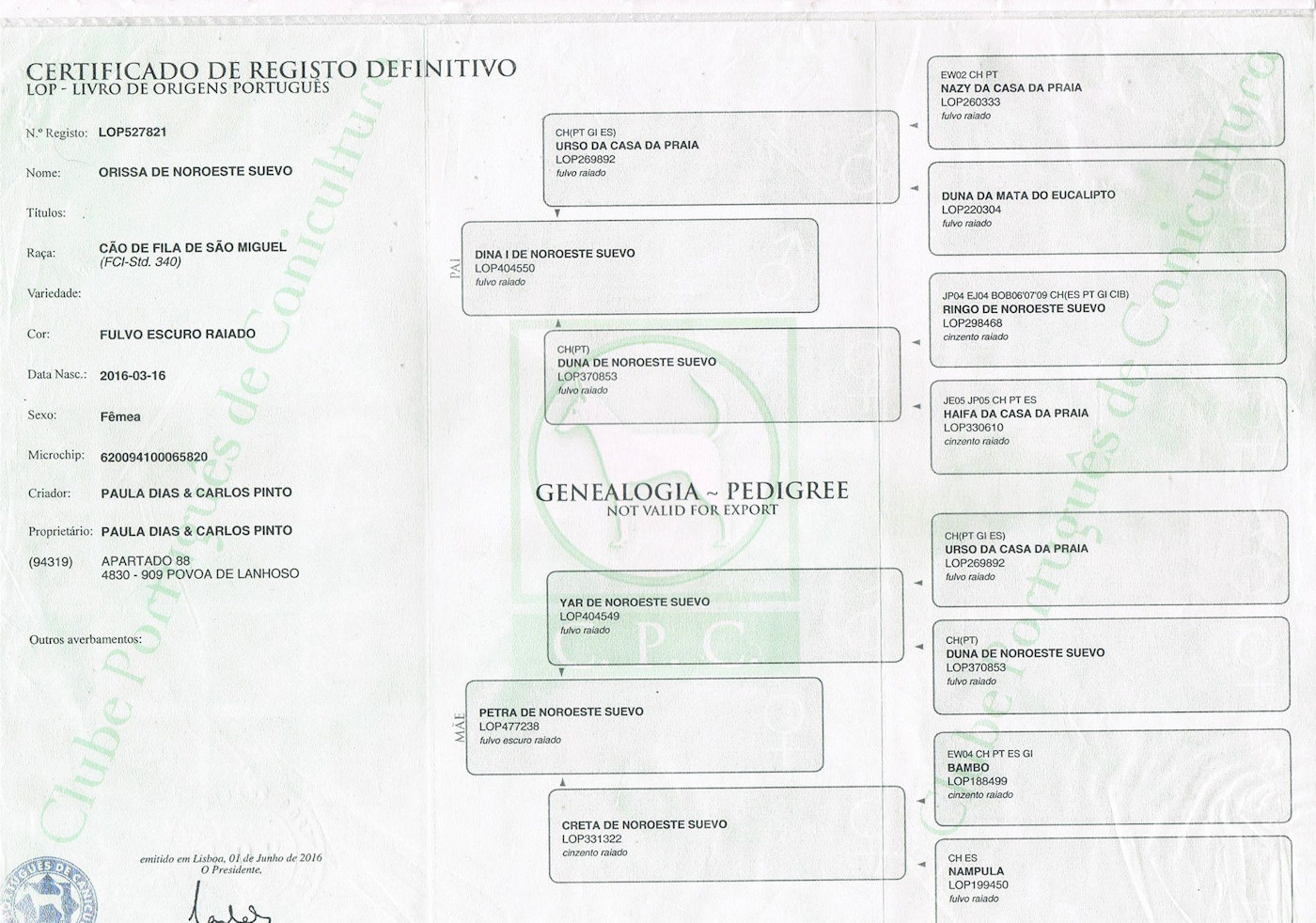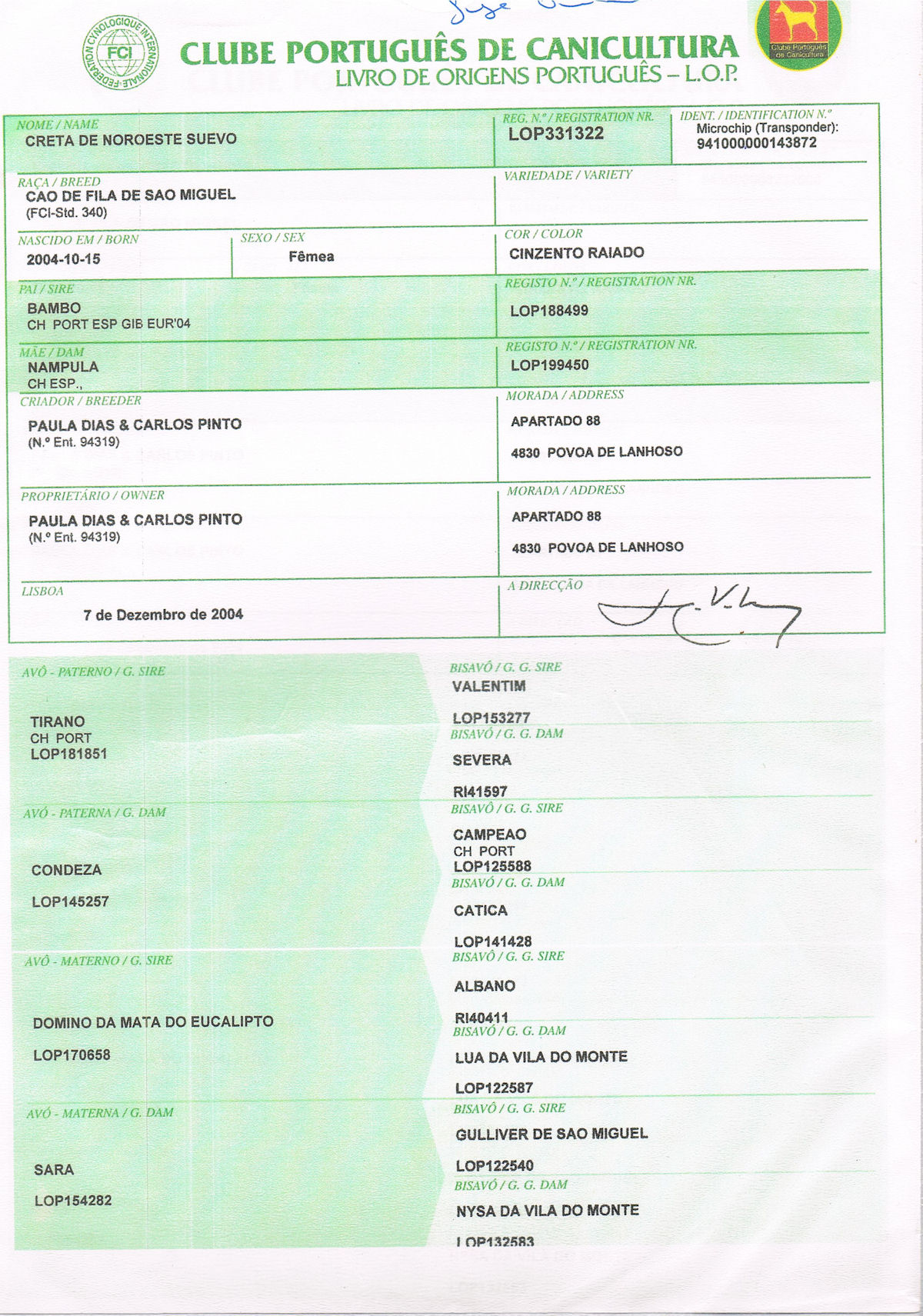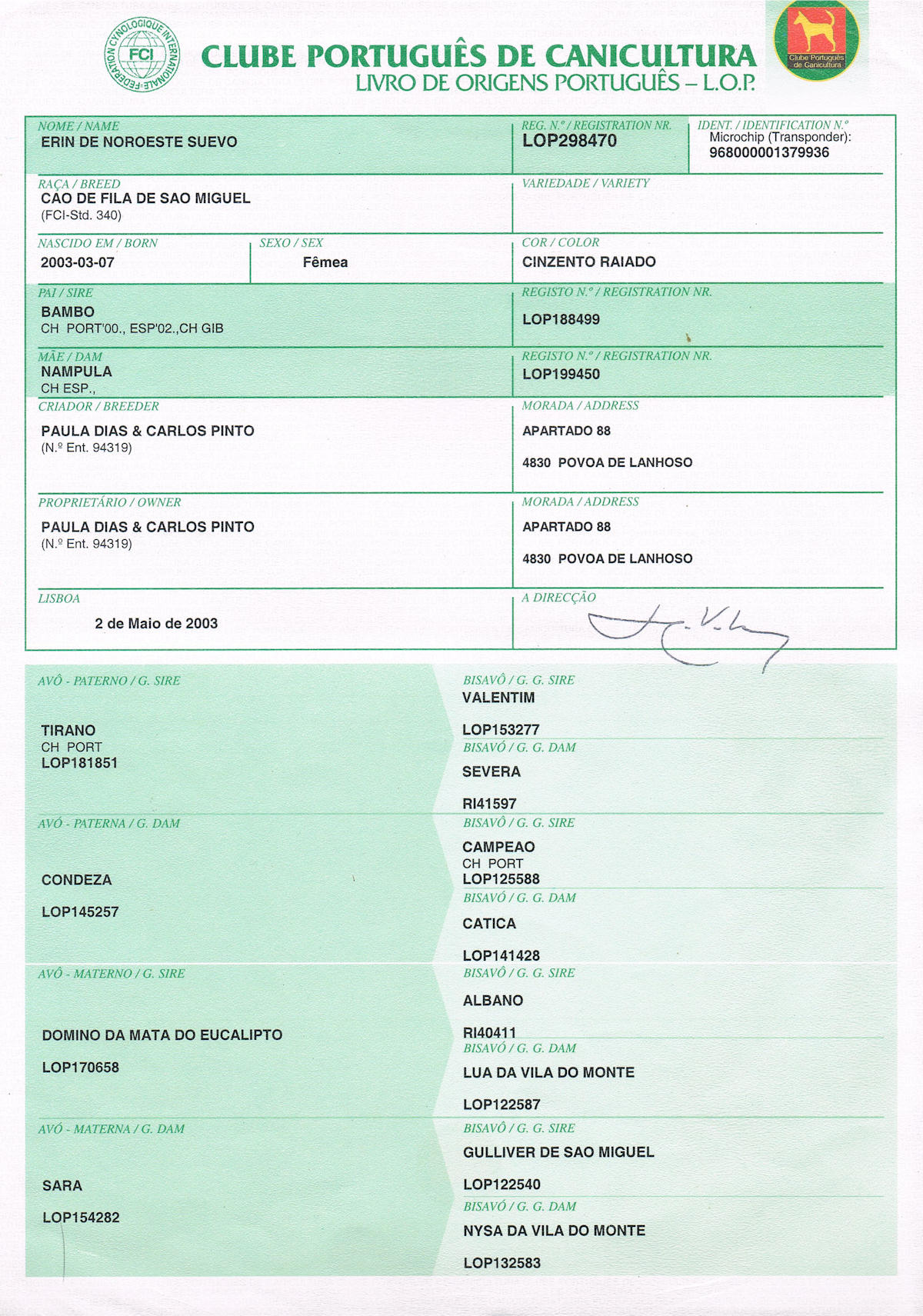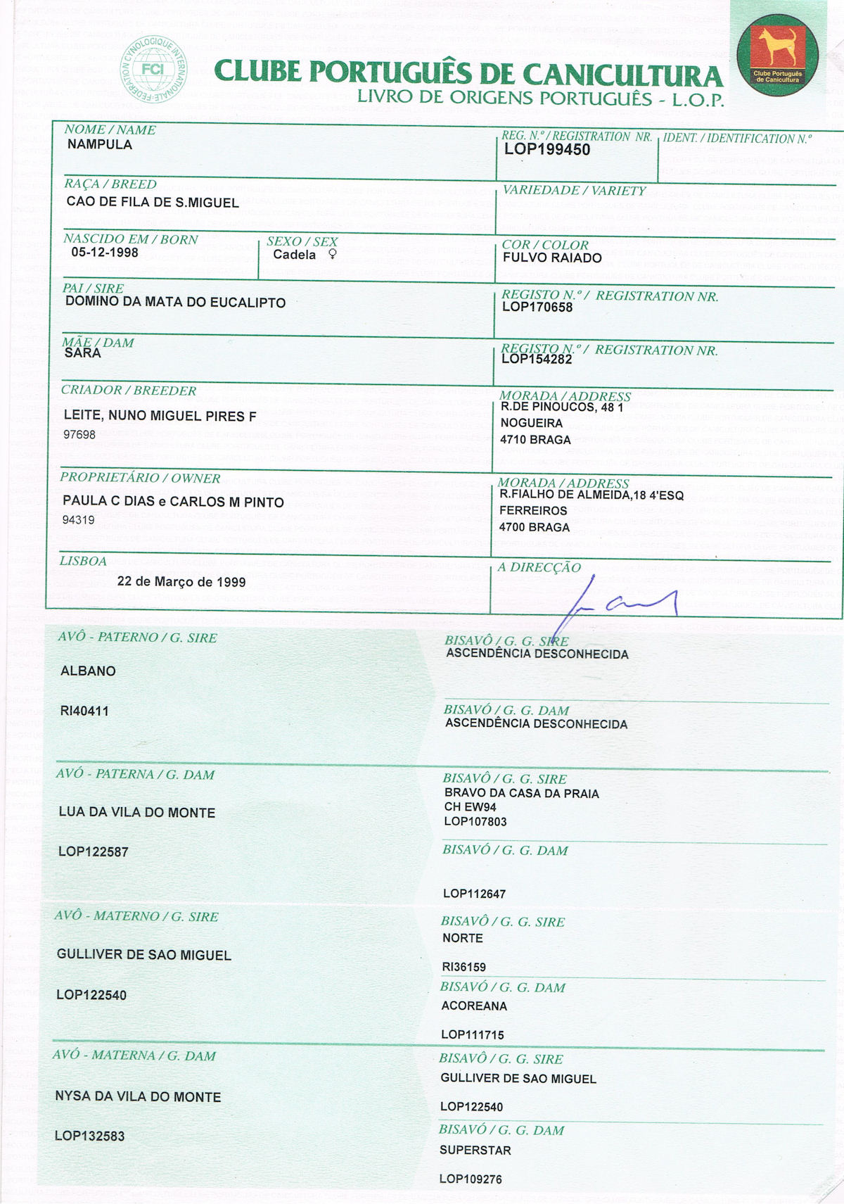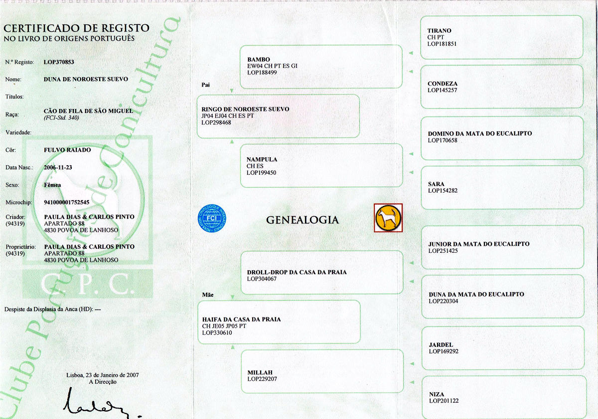 Filho de Bambo (CH PORT,ESP e GIB) e de Nampula (CH ESP)